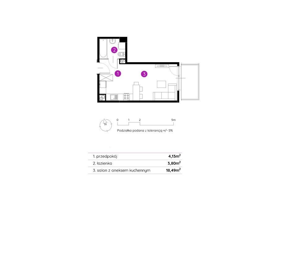 | Powierzchnia balkonów/tarasów | 5,00 m² |