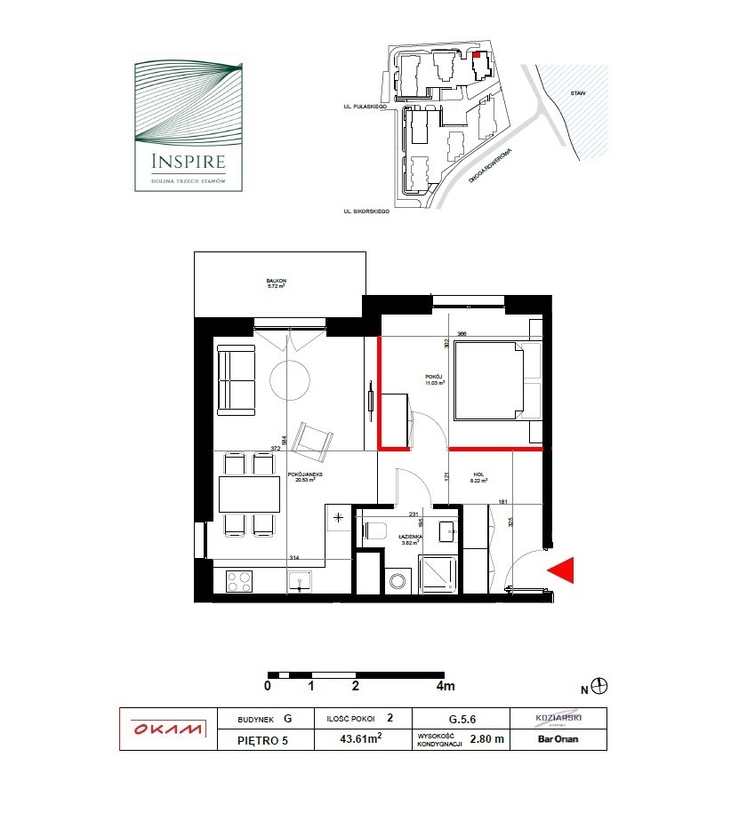 Mieszkanie znajduje się w nowoczesnej inwestycji INSPIRE dewelopera OKAM, mieszkanie posiada boczny widok na staw.