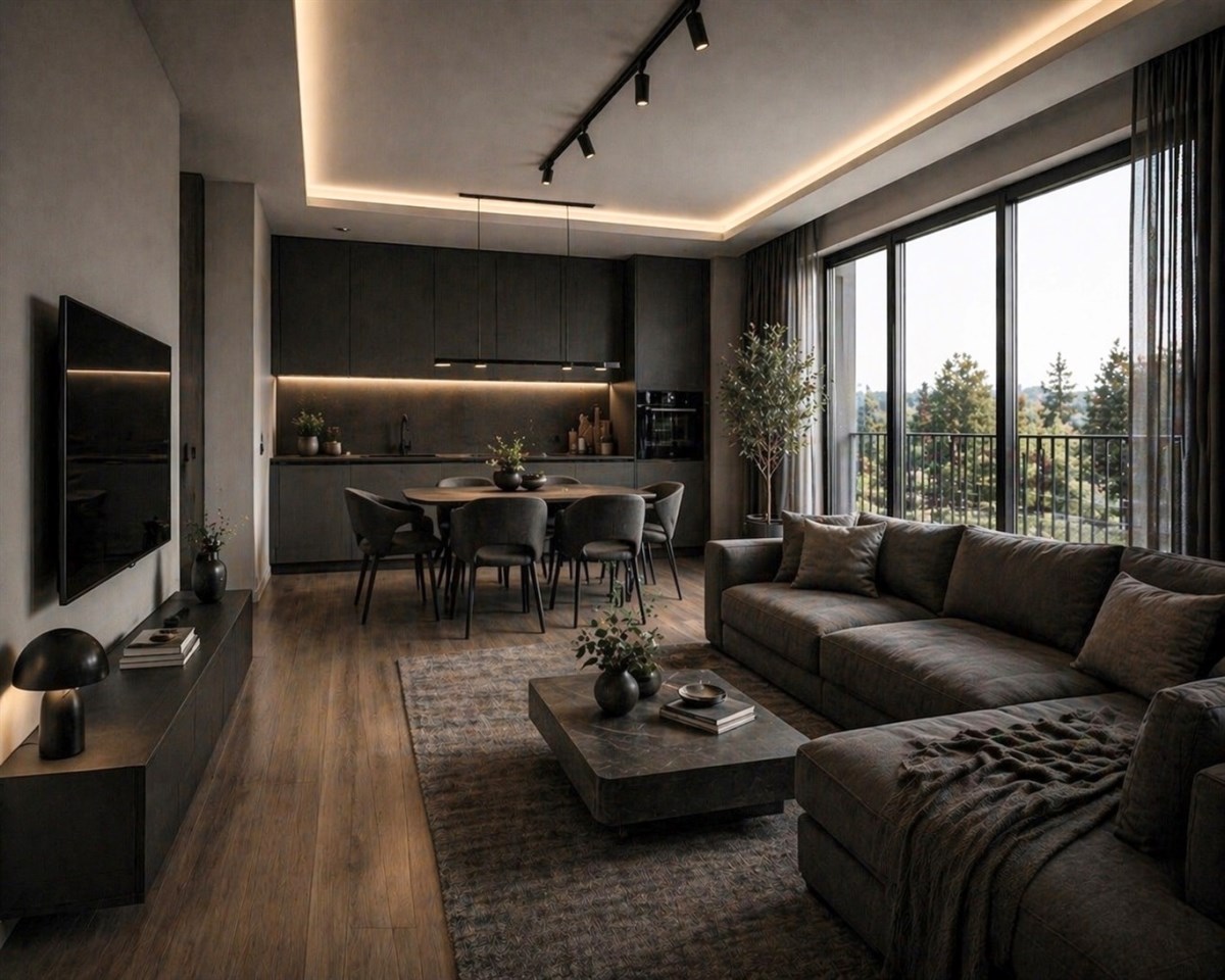 - Salon z aneksem kuchennym – 23,31 m²