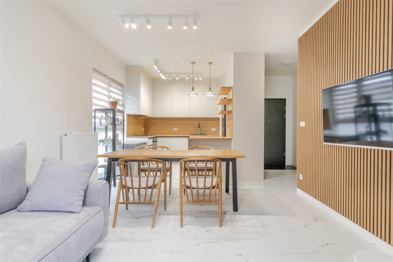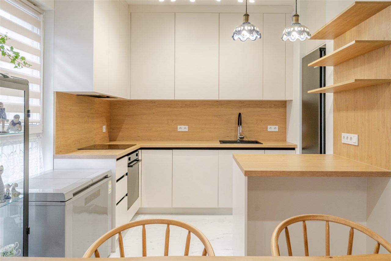 | Wyposażenie kuchni | kuchnia elektryczna, lodówko-zamrażalka,, meble kuchenne na wymiar, płyta indukcyjna, pralka, sprzęt AGD, zlewozmywak z baterią, zmywarka |