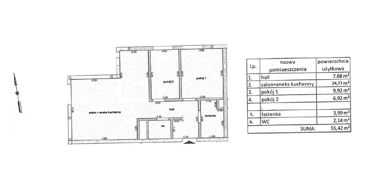 | Powierzchnia użytkowa [m2] | 55,42 m² |